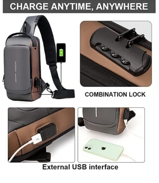 Gray with brawn Crossbody Sling Bag For Men & Women