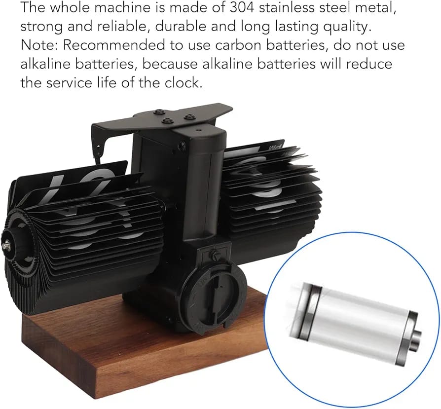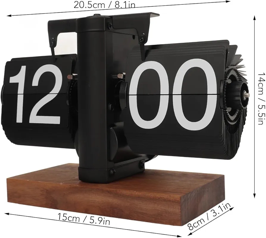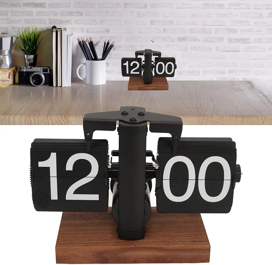 ساعة رقمية ميكانيكية بتصميم رجعي، تعمل بالبطارية وتدور بواسطة تروس داخلية، ساعة طاولة كلاسيكية على طراز السيارات القديمة لتزيين المنزل أو المكتب (أسود)