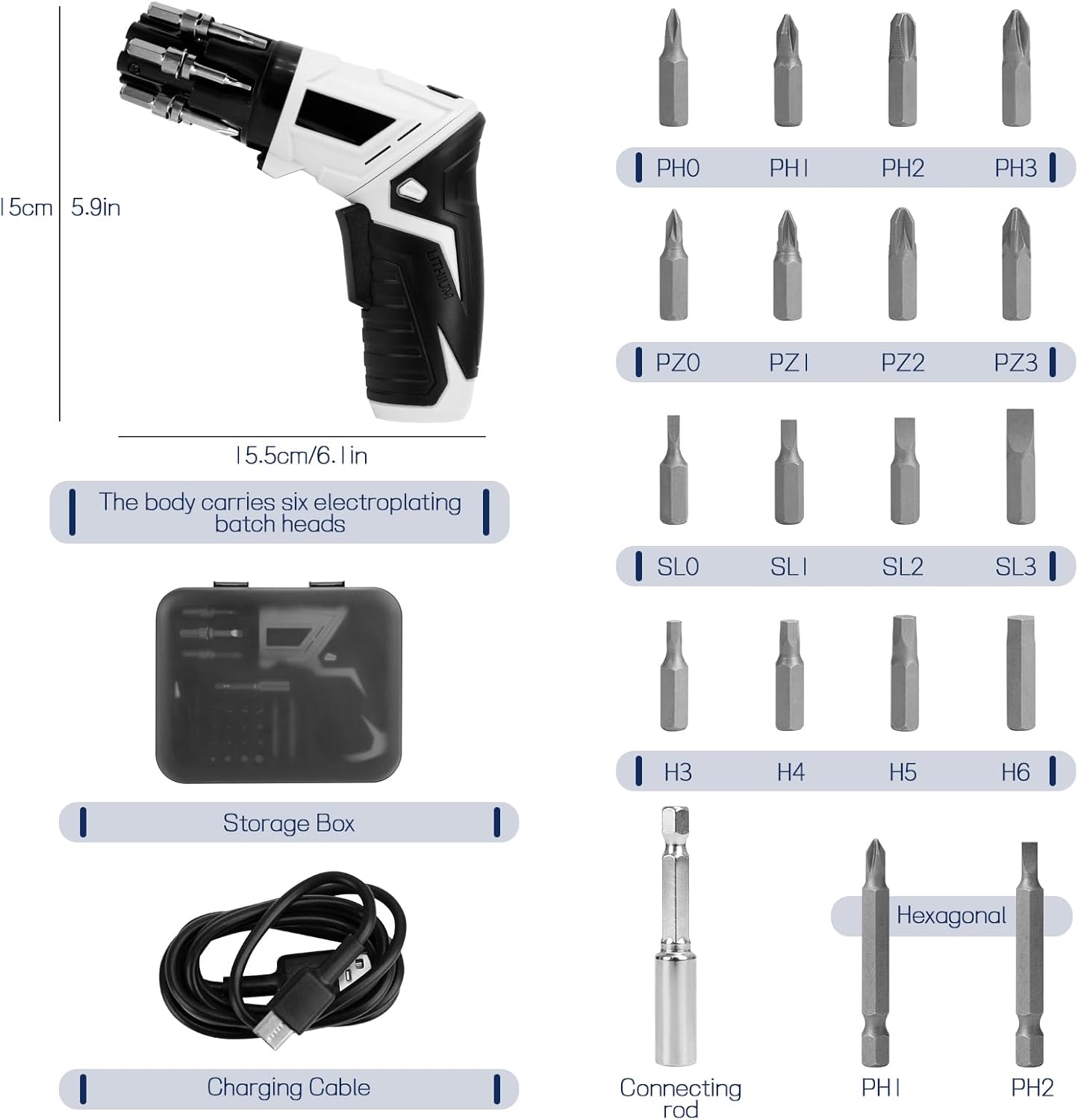 مع 6 قطع من الرؤوس القابلة للتغيير